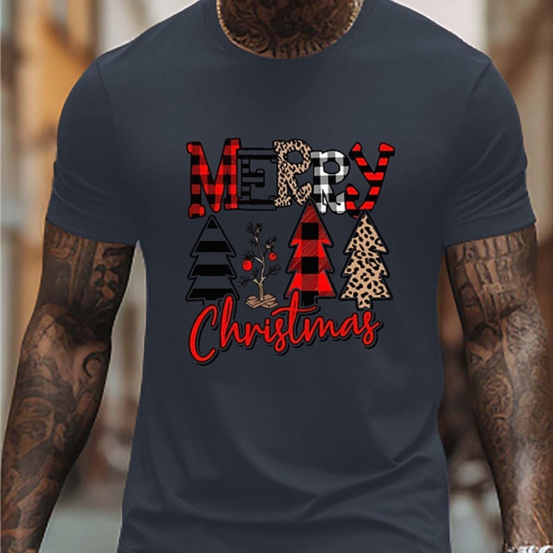 HOT ! Men's Tree Merry Christmas T Shirt Tee Top Cotton Short Sleeve Graphic Shirt White Dark Blue Beige Comfortable Tee Sports Outdoor Holiday Fashion Designer Clothing