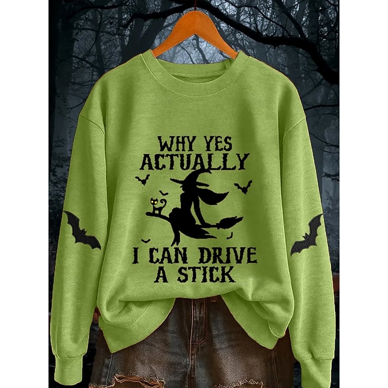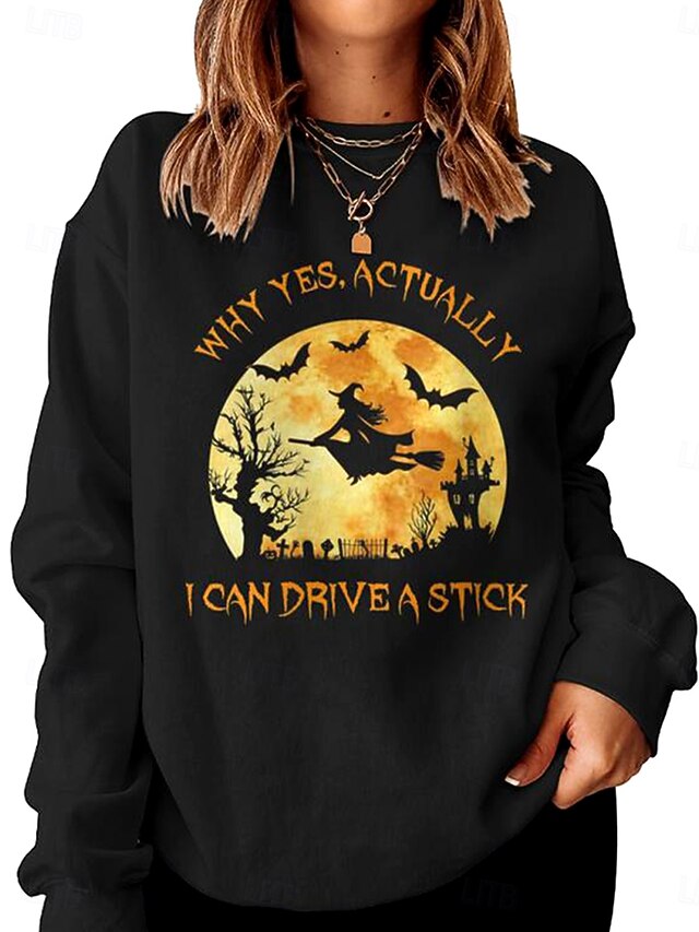 More information about Halloween Women's Pullover Sweatshirt Witch Graphic Letter Fashion Casual Long Sleeve Crew Neck Regular Tops Street Dailywear Casual Print Black Red Purple Green Fall Winter