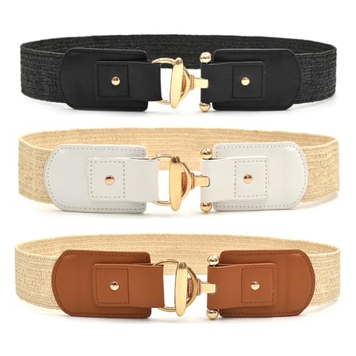 Braided Straw Belt with Secure Gold Clasp Lightweight Breathable Elastic Waistband for Dresses Formal Wear Girdle 5