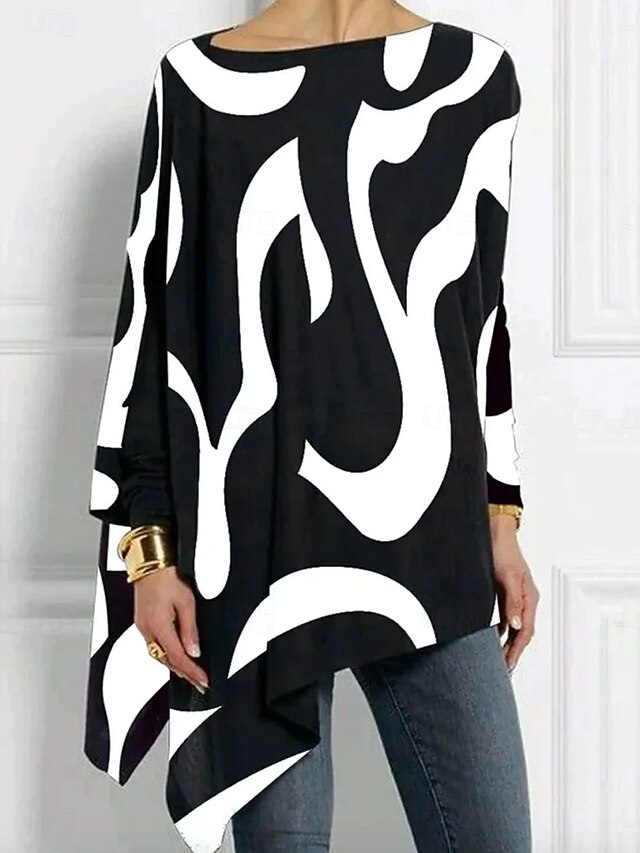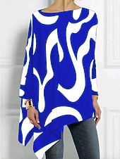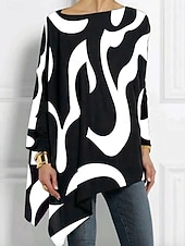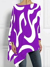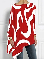 More information about Women's T shirt Long Sleeve Graphic Geometric Abstract Vintage Stylish Classic Long Sleeve Crew Neck Long Tops Daily Print Asymmetrical Black Red Blue Purple Spring Fall Prefall