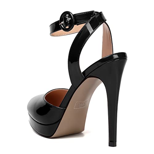 WAYDERNS Womens Ankle Strap Patent Fashion Party Slingback Platform Buckle Round Toe Stiletto High Heel Pumps Shoes 4.7 Inch 5