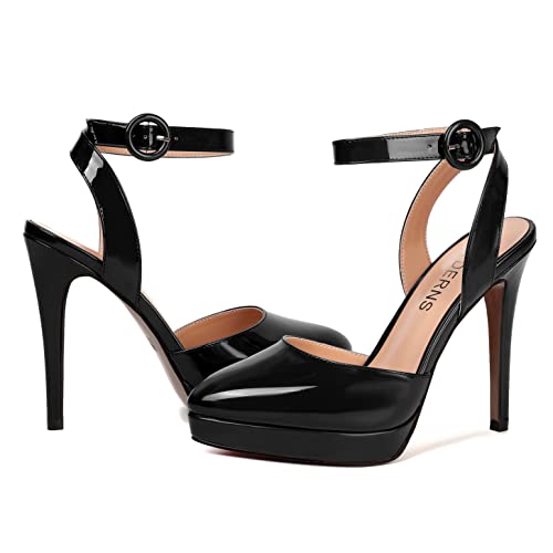 HOT ! WAYDERNS Womens Ankle Strap Patent Fashion Party Slingback Platform Buckle Round Toe Stiletto High Heel Pumps Shoes 4.7 Inch