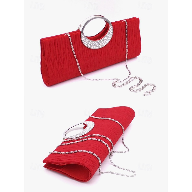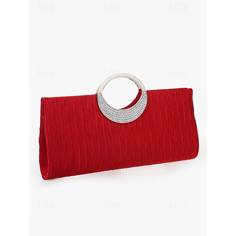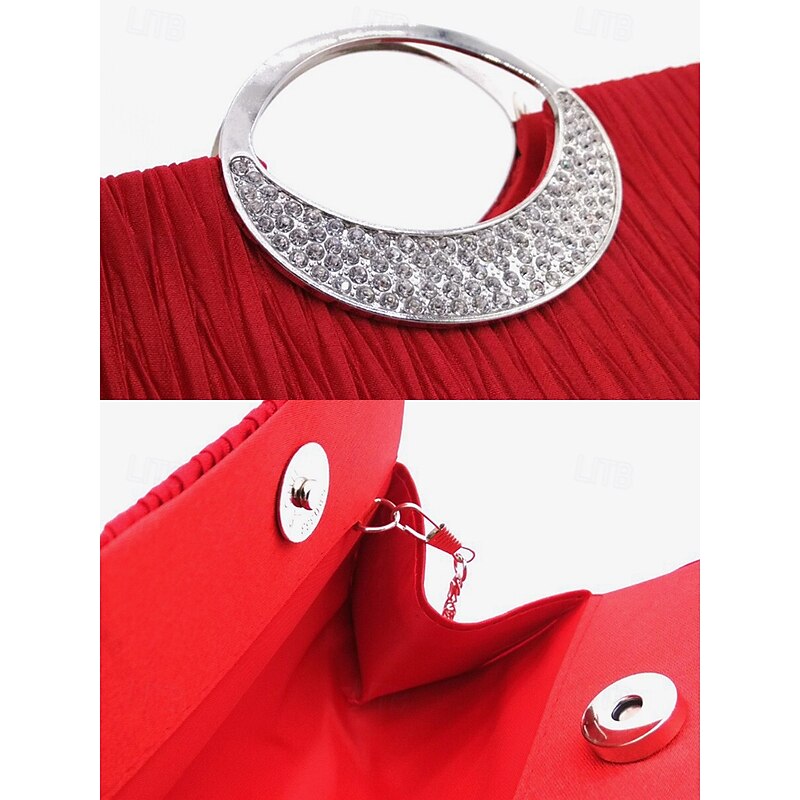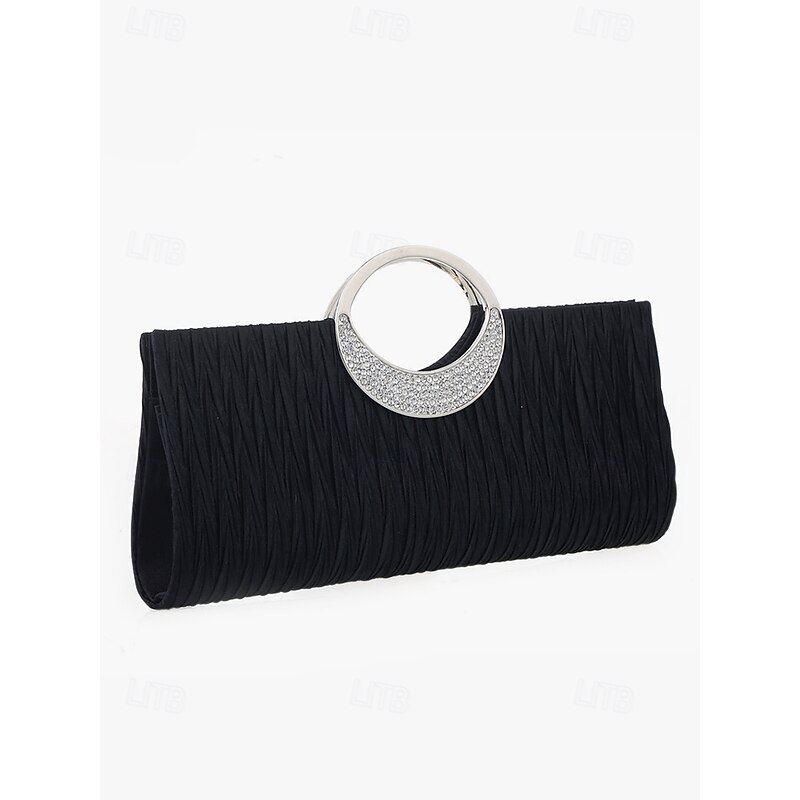 HOT ! Women's Black Evening Clutch with Rhinestone Handle - Elegant Handbag for Weddings and Formal Events