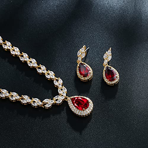 WeimanJewelry White Gold/Gold Plated Women Cubic Zirconia CZ Marquise Teardrop Bridal Tennis Necklace and Drop Earring Set for Wedding Brides (Gold tone-ruby cz) 5