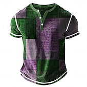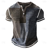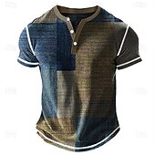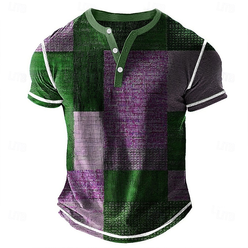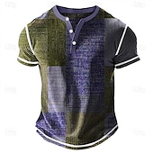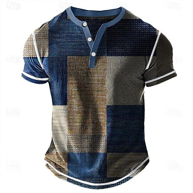 More information about Men's Geometric Patchwork Henley Shirt Waffle T Shirt Short Sleeve Daily Retro Vintage Classic Sports Outdoor Casual Holiday Spring & Summer Blue Green Purple Brown Grey Henley Henley T-Shirt