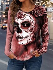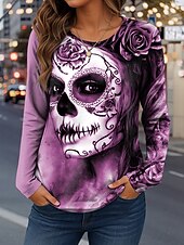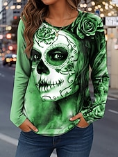 More information about Halloween Women's T Shirt Skulls Graphic Fashion Casual Long Sleeve Crew Neck Regular Tops Daily Weekend Print Red Blue Purple Green Khaki Spring Fall Winter