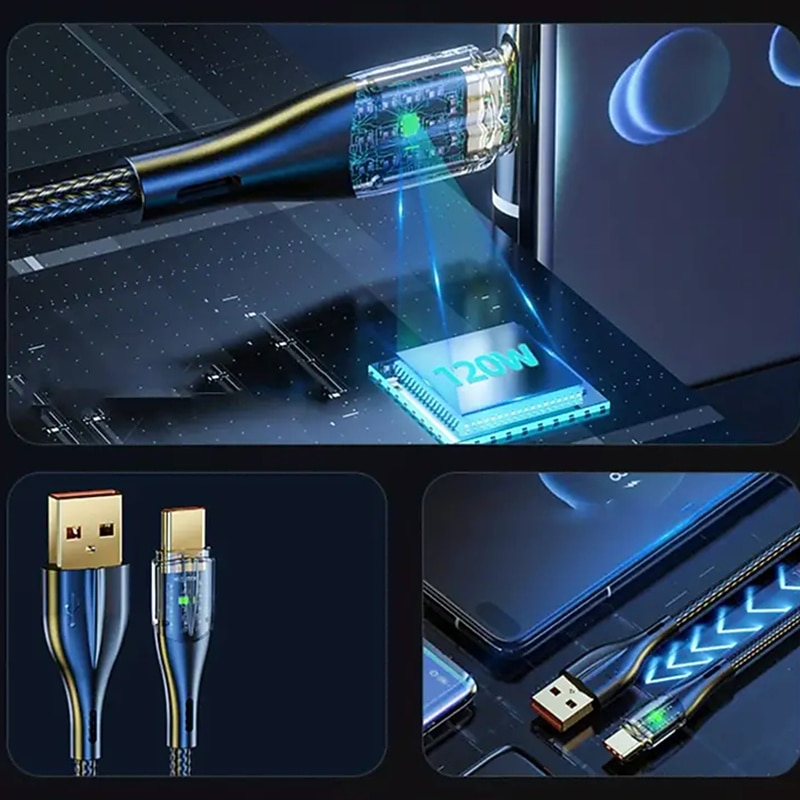 120W Fast Charging Cable 6A Transparent Shell Design Indicator Light Type-C Suitable for Apple Samsung LeTV Xiaomi LG BBK Oppo - 100cm/150cm/200cm 1