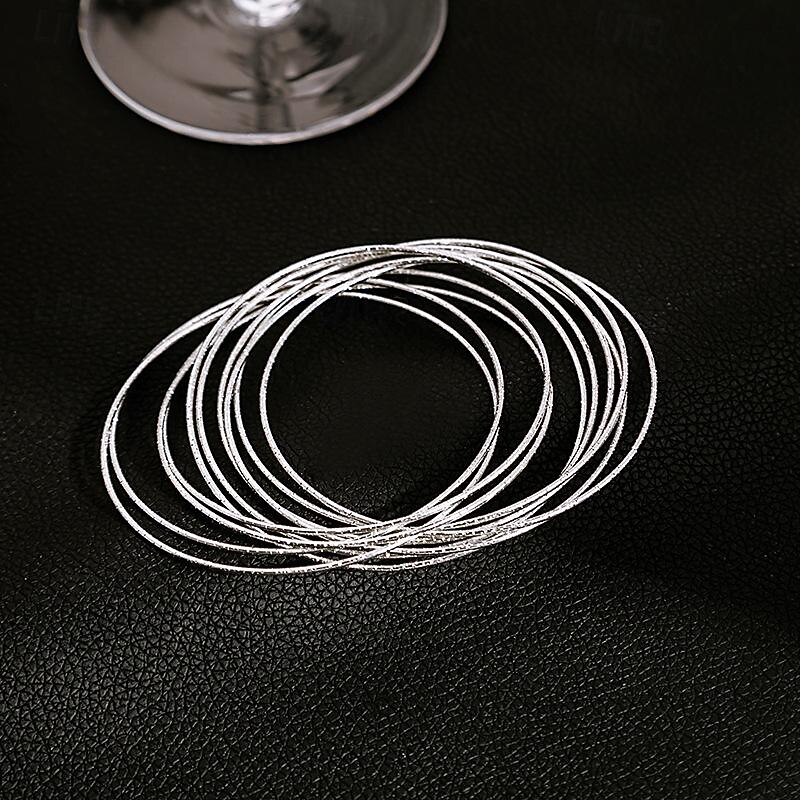 Highlights [Fabric]: Crafted from a high-quality alloy, this elegant bracelet features a polished silver finish that beautifully catches the light, offering both durability and a sleek, stylish appearance. [Silhouette]: Designed with a modern and minimalist aesthetic, the multiple intertwined bangles create a sophisticated and stylish silhouette perfect for enhancing any outfit. [Design Highlights]: The bracelet features an elegant and fancy design, making it a standout piece. Its intertwined bangles contribute to its allure, providing a contemporary twist on the classic bangle style. [Occasions]: Ideal for dates, gifting, or any occasion requiring a touch of elegance. This versatile bracelet complements a wide range of outfits, making it suitable for both casual and sophisticated events. [Size Information]: Designed to fit comfortably for most wrist sizes, providing ease of wear while maintaining its stylish appeal.