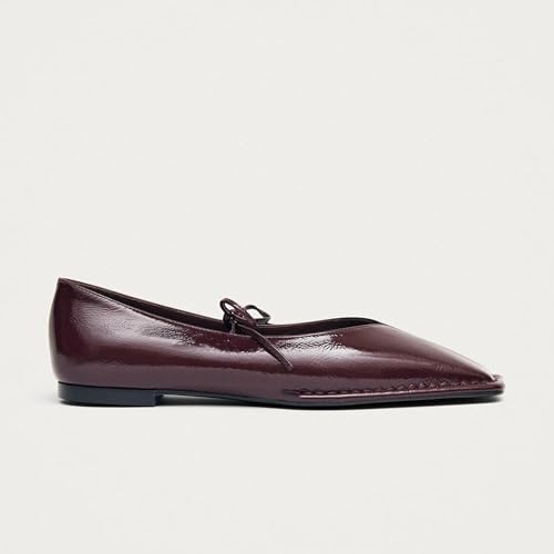 QIV Square Toe Mary Jane Ballet Flats for Women Lace up Slip on Work Flats with Bow Comfort Casual Dress Ballerina Shoes 4