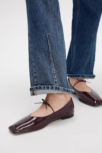 QIV Square Toe Mary Jane Ballet Flats for Women Lace up Slip on Work Flats with Bow Comfort Casual Dress Ballerina Shoes 6