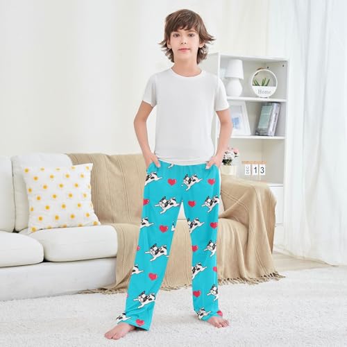 HOT ! Boys' Pants Dog Bulldog Heart Puppy Long Bottoms Jogger Pants Elastic Waist Trousers with Pockets S-XL