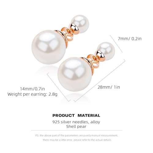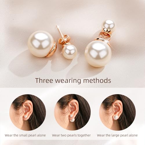 Double Pearl Drop Earrings for Women, Rose Gold Plated Elegant Dangle Earrings, Classic Pearl Jewelry for Wedding & Everyday Wear 5