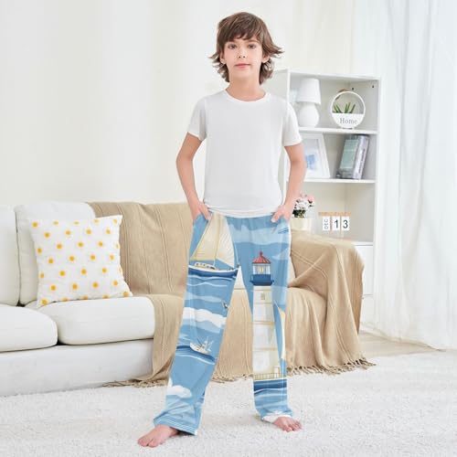 HOT ! ZZXXB Sailboat with Lighthouse Boys Long Pants Soft Trousers Elastic Waist Kids Lounge Bottoms with Pockets S-XL