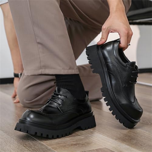 Men's Leather Lace Up Platform Wingtip Brogue Oxford Shoes Chunky Lug Sole Non-Slip Vintage Style for Men Casual Business Office Work Dress Shoes 6