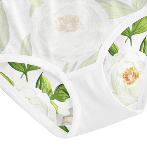 White Peony Flowers Green Leaves Girl Panties Cute Toddler Underwear Custom Cotton Pattern Briefs Undies Kids 2t 4