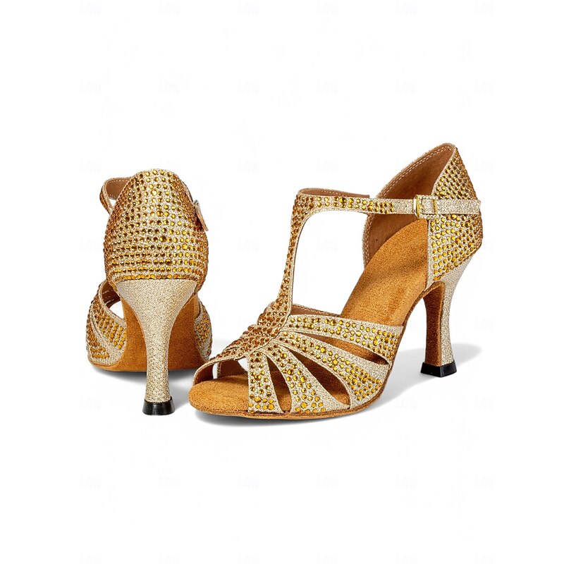Sparkling Rhinestone Ballroom Dance Sandals – Latin Salsa High Heel Shoes for Women 8