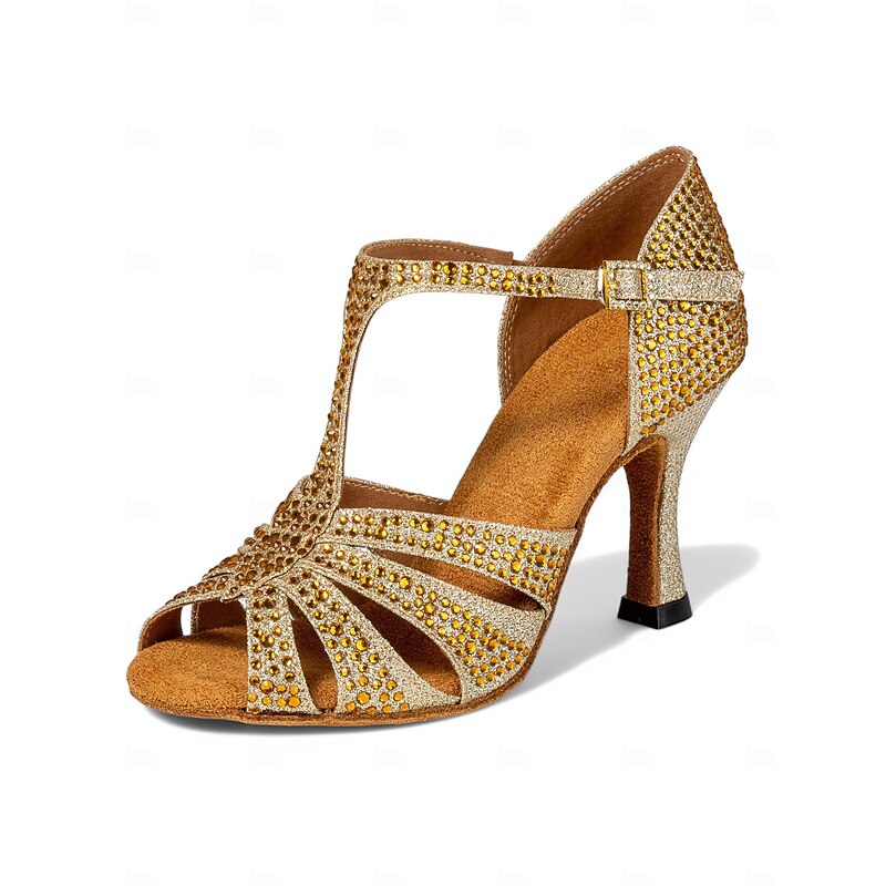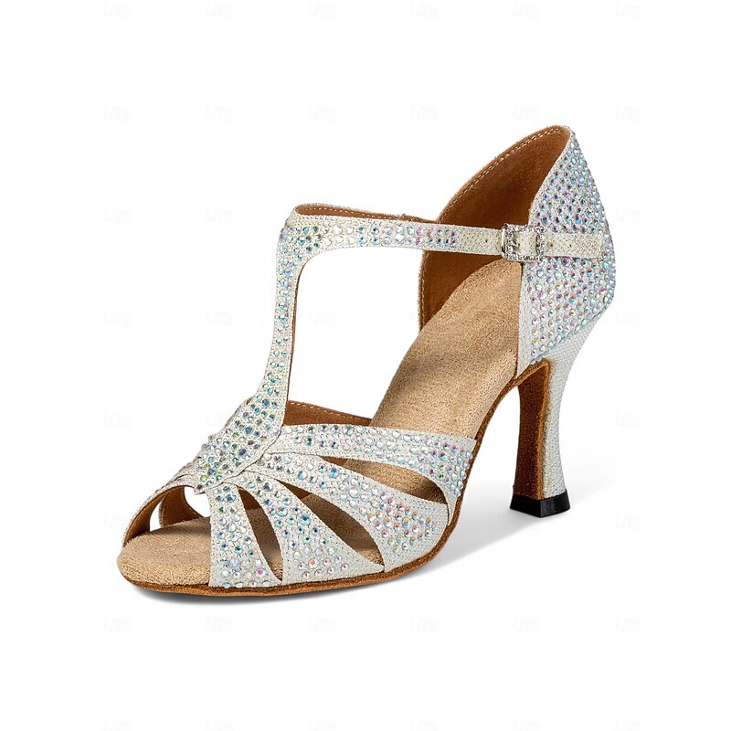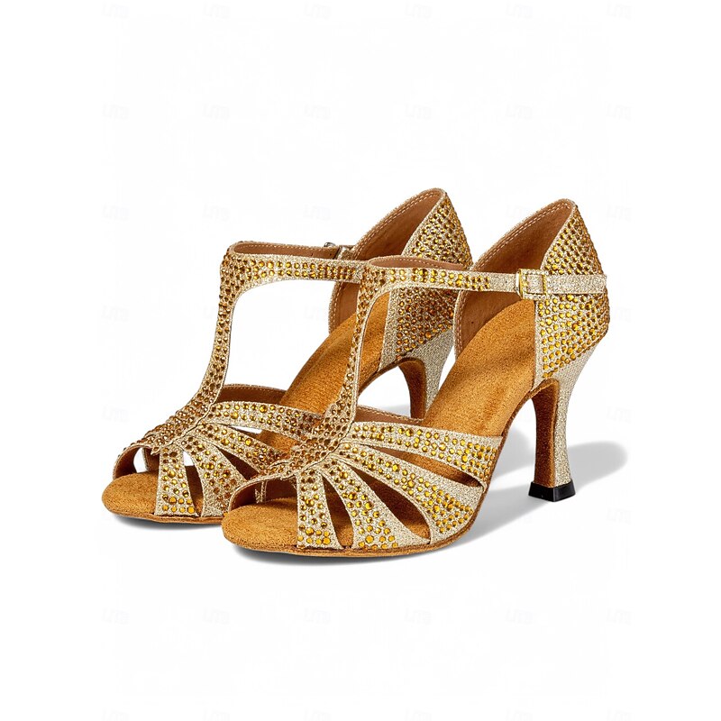 Sparkling Rhinestone Ballroom Dance Sandals – Latin Salsa High Heel Shoes for Women 1