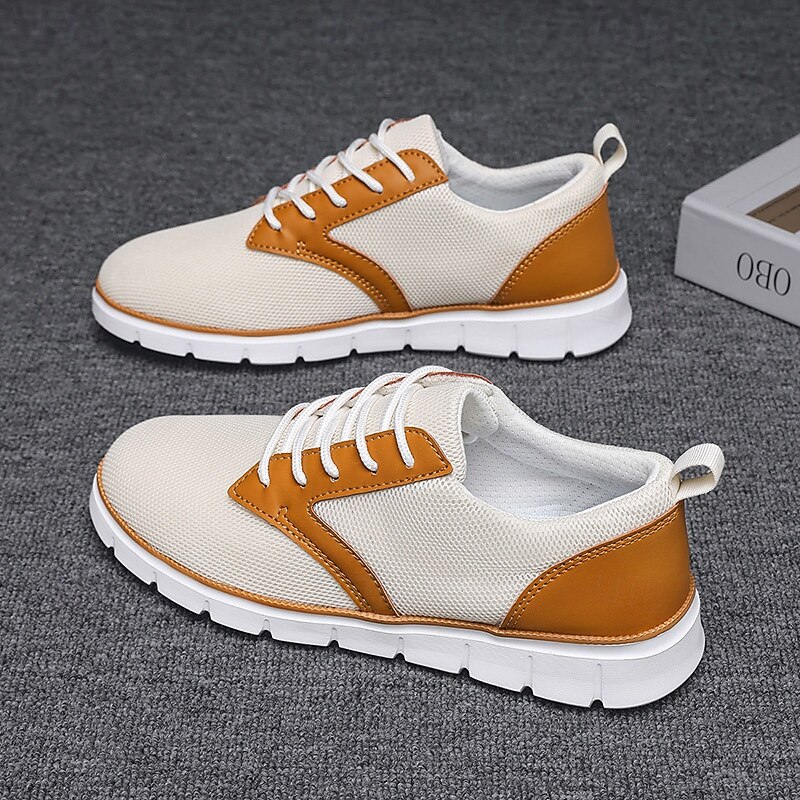 HOT ! Men's Canvas and PU Leather Oxford Sneakers – Comfortable Lace-Up Casual Shoes for Work, Travel and Spring Outfits