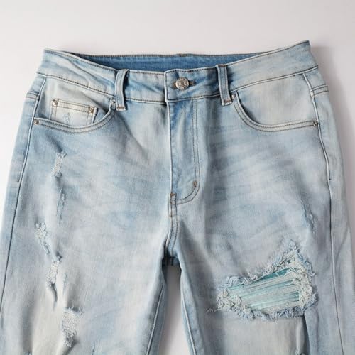 More information about Jeans Pants Trousers Denim Light Blue Ripped Distressed Hole Stretch Slim Fit Trendy Street Casual Small Straight Leg for Men(Light Blue,29)