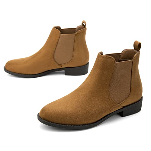 • Maxmuxun Women's Chelsea Boots: Women cushy flats round toe booties are made of first-class vegan leather/faux suede, exquisite workmanship, breathable and lightweight.