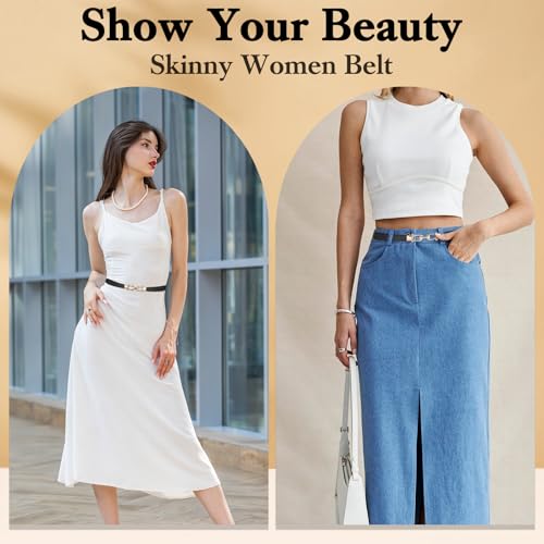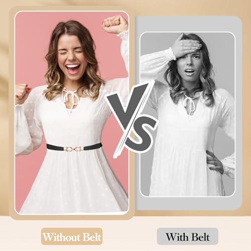 • 【Easy and Convenient to Use】The interlocking gold metal buckles of waist belts are both fashionable and practical. Chain belts for women fashion are easy to put on and take off. The back sliding function of dress belt women can adjust the fit to ensure comfort and flexibility. Women's belts for dress add a touch of elegance, making elastic belts the perfect accessory for women's dresses, sweaters, and shirts.