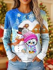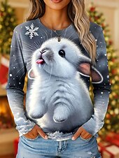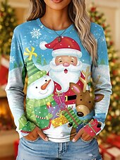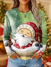 More information about Christmas Women's T Shirt Graphic Santa Claus Vintage Fashion Stylish Long Sleeve Crew Neck Regular Tops Daily Weekend Print White Blue Green Gray Spring Fall Winter