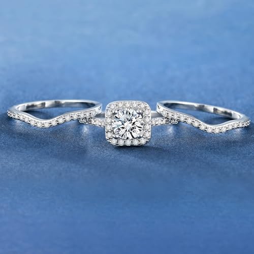 18K White Gold Plated Rings for Women - 7/8/9# Cz Three-In-One Halo Wedding Engagement Promise Eternity Ring, Personalized Hypoallergenic Non Tarnish Rings, Christmas Birthday Gifts Trendy Jewelry 1