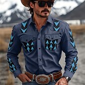 More information about Men's Geometric Pattern Western Shirt Button Up Shirt Cowboy Shirt Long Sleeve Vintage Retro Outdoor Daily WorkWear Fall & Winter Turndown 3D Print Front Two Pockets Linen Like Shirt Army Green Blue