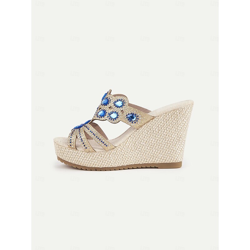 HOT ! Women's Rhinestone Wedge Sandals – Sparkly Open-Toe Platform Sandals with Gem Embellishments for Summer, Beachwear, and Casual Chic Outfits