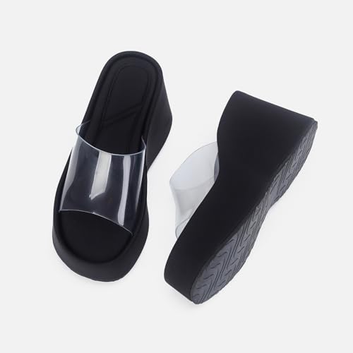 Women'S Clear Strap Platform Wedges Slide Sandals Fashion Round Toe Open Slip-On Comfortable High Heel Platform Dressy Slippers Summer Party Dance Casual Beach Walking Slippers 6