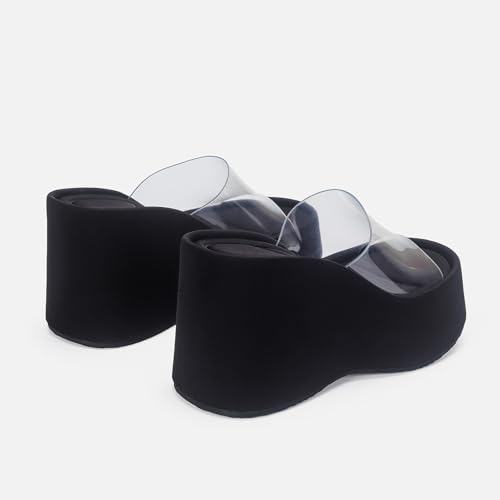 Women'S Clear Strap Platform Wedges Slide Sandals Fashion Round Toe Open Slip-On Comfortable High Heel Platform Dressy Slippers Summer Party Dance Casual Beach Walking Slippers 4