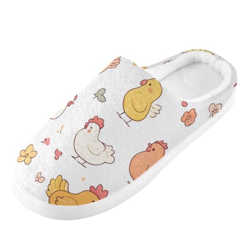 JUNZAN Cartoon Cute Chicken White Mens House Cotton Slipper Wide Memory Foam Guest Slippers for Travel Funny Presents 6-7 4