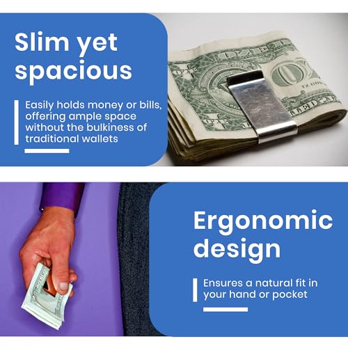 • Compact and portable: Designed to be slim and lightweight, this money clip wallet fits comfortably in front or back pockets. Its compact size offers a convenient and more efficient way to carry cash and cards than traditional wallets.