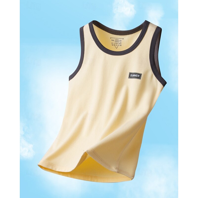 Kids Boys Tank Tee Color Block Sleeveless Children Top Going out Basic Summer White 4 years+ 15