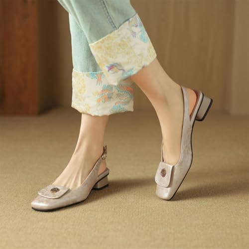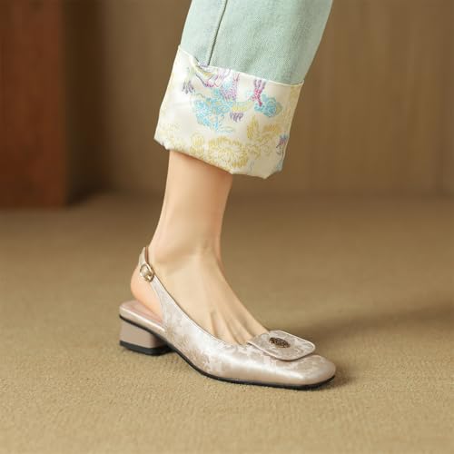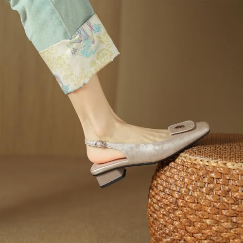 Women's Square Metallic Flower Closed Toe Slip-On Pumps Embroidery Buckle Low Block Heel Slide Slingback Classic Work Office Shoes Church Comfort Dress Party Shopping Dating Sandals 6