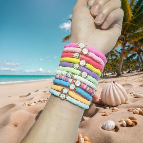 • Excellent Design: Those bracelets are consist of flat clay beads and gold plated smiley sequins on elastic bands, playful, colorful and stretch
