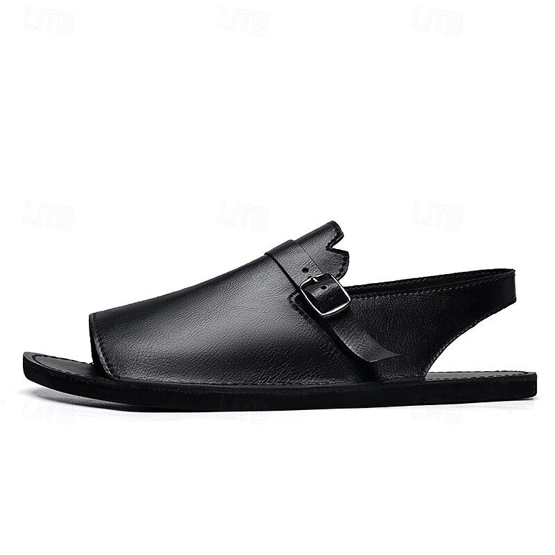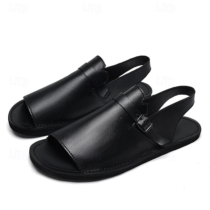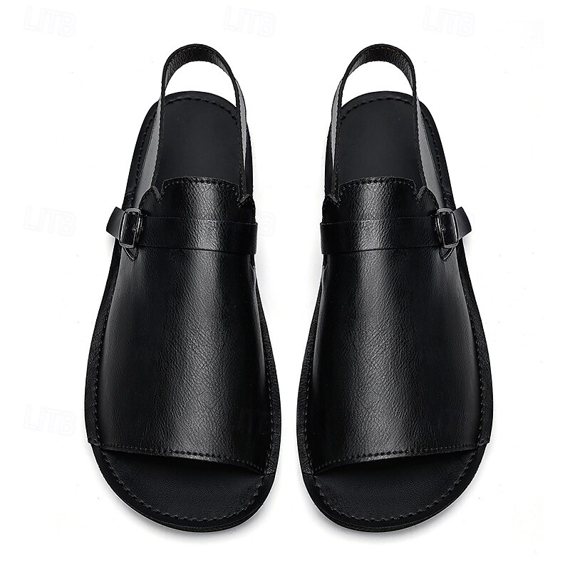 More information about Men's Brown Faux Leather Slingback Sandals with Adjustable Buckle - Versatile Footwear for Outdoor and Casual Wear