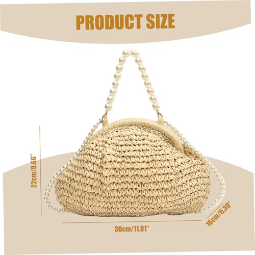 More information about Straw Purse Cloud Dumpling Bag Elegant Woven Purse with Pearl Handle and Shoulder Strap Handbag Crossbody Bags for Women Summer Beach Travel Dating Beige, Straw, Christmas Decor