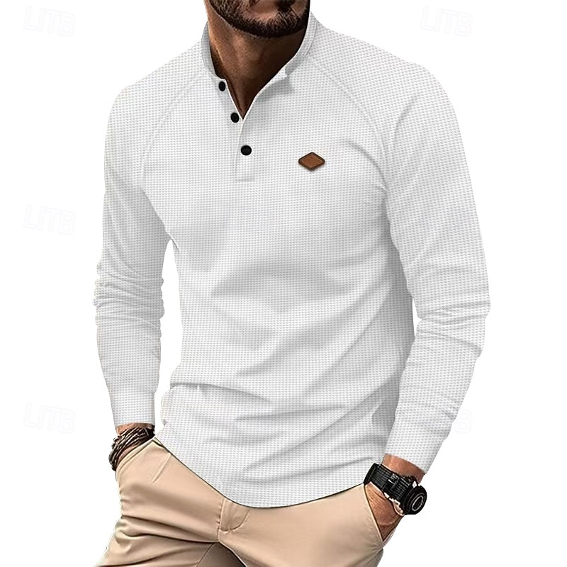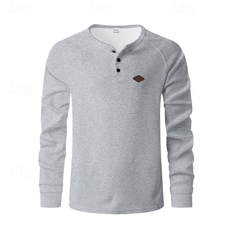 More information about Men's Button T Shirt T Shirt Waffle Henley Shirt Henley Shirt Long Sleeve Henley Spring Fall Plain Fashion Designer Basic Buttons Vacation Street Going out Black White Royal Blue Top Tee for Men