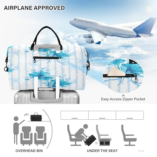 CEBUGI Boho Blue Floral Quilted Duffle Bag for Women Large Carry On Travel Weekend Bag Hospital Bags for Labor and Delivery 7