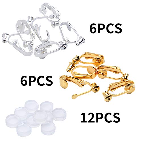 HOT ! Aylifu Clip-On Earring Converters - 12 Non-Pierced Earring Clips, Silicone Pads for Jewellery Making - Silver and Gold