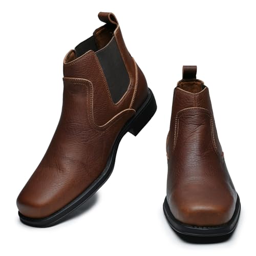 Men's Western Chelsea Cowboy Boots Square Toe, All-Weather Slip On Casual Boots for Ultimate Comfort & Durability 7