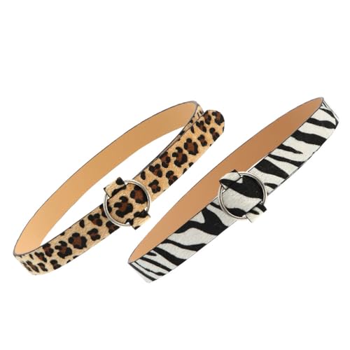 HOT ! 2pcs Imitation Leather Round Buckle Waist Belts for Women, Casual Skinny Belts in Black and Brown, Perfect for Jeans and Dresses