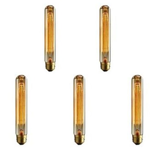 HOT ! 5pcs T9/T185 40W Vintage Edison Light Bulbs Antique Incandescent Bulb E26 E27 Tubular Bulb Nostalgic Tungsten Filament Golden Tinted Glass for Industrial Wall Sconces Pendant Lighting 220-240V