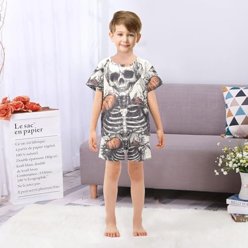 ALAZA Halloween Pumpkins Skeleton Pajama Set Short Sleeve Sleepwear Soft Lounge Nightwear 2