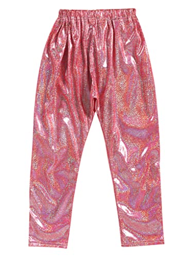 Kids Boys Girls Metallic Shiny Hip Hop Jazz Streetwear Baggy Pants Loose Fit Trousers for Stage Performance Show Red 3-4 Years 6
