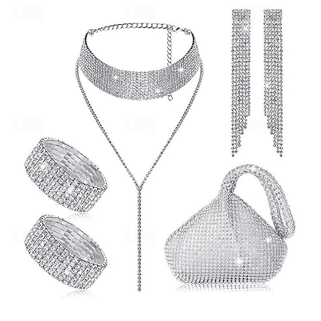 More information about Bride Jewelry Set Full of Diamond Claw Chains Tassel Earrings Left And Right Hand Chains Neck Chains Handheld Bag