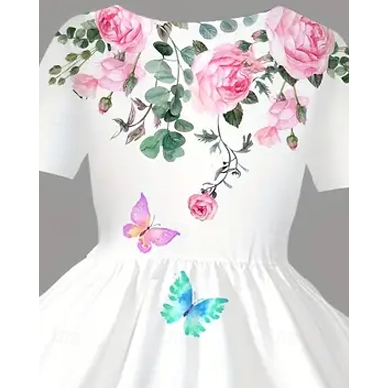 More information about Girls' 3D Butterfly Flower Dress Short Sleeve Summer Spring Vacation Daily Holiday Princess Beautiful Sweet Kids 4-12 Years Casual Dress A Line Dress Knee-length Regular Fit