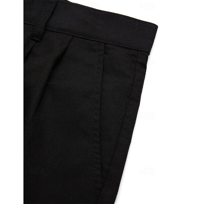 More information about Men's Linen Pants Trousers Summer Pants Pleated Pants Front Pocket Straight Leg Plain Comfort Breathable Casual Daily Holiday Fashion Basic Black White