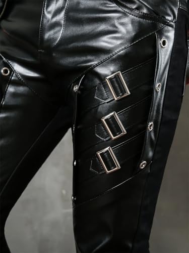 • Fashionable Design:Featuring a slim fit silhouette with zipper accents and multi-pocket styling, these faux leather biker trousers highlight a modern rock, punk, and gothic vibe. The stretchy waistband provides flexibility while keeping masculine look